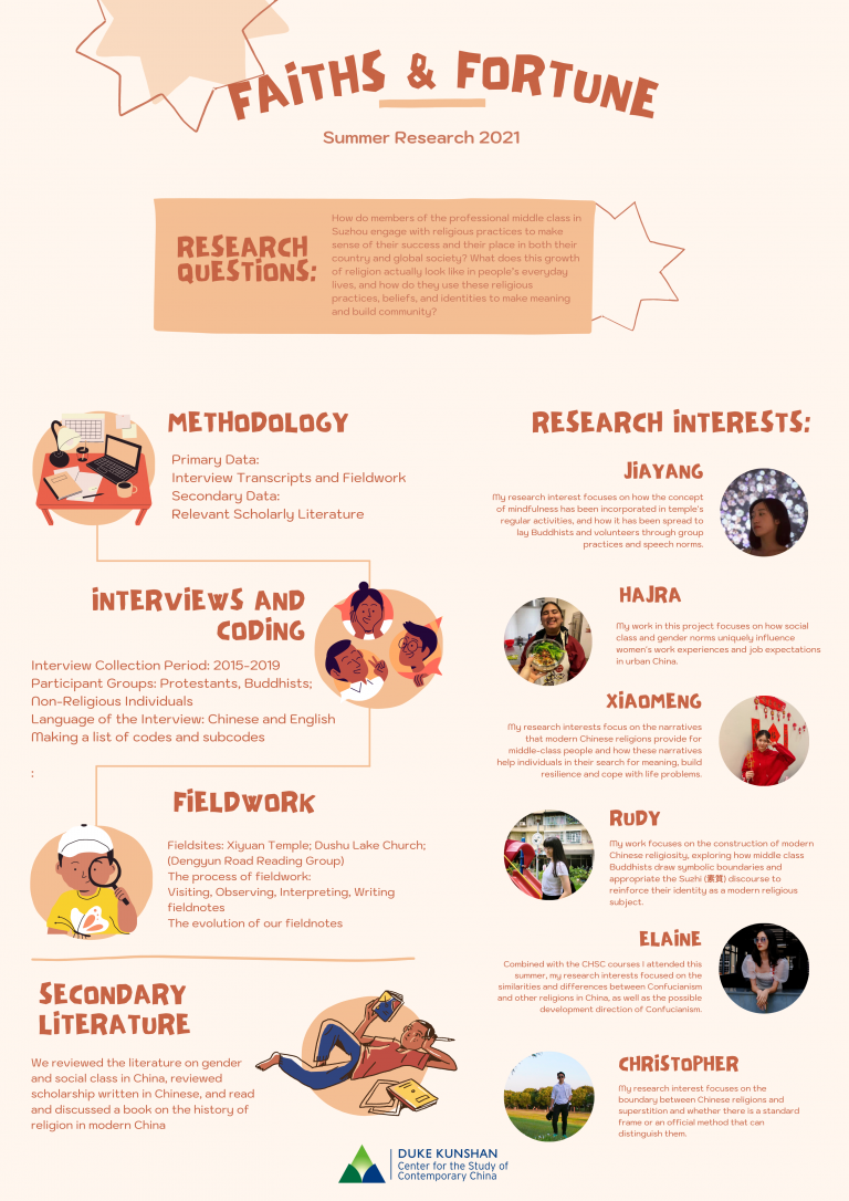 This project examines the intersection of two rapid social changes in contemporary China: the growth of religion and the return of social class. Specifically, this project focuses on the educated middle class and draws on the recent practice turn in the sociology of religion to examine how the ways people do religion and develop religious dispositions intersect with, shape, and are shaped by social inequalities such as social class. Based in Suzhou, this qualitative project involves ethnography at Buddhist and Protestant religious organizations and in-depth interviews with Buddhist, Protestant, and non-religious educated professionals.