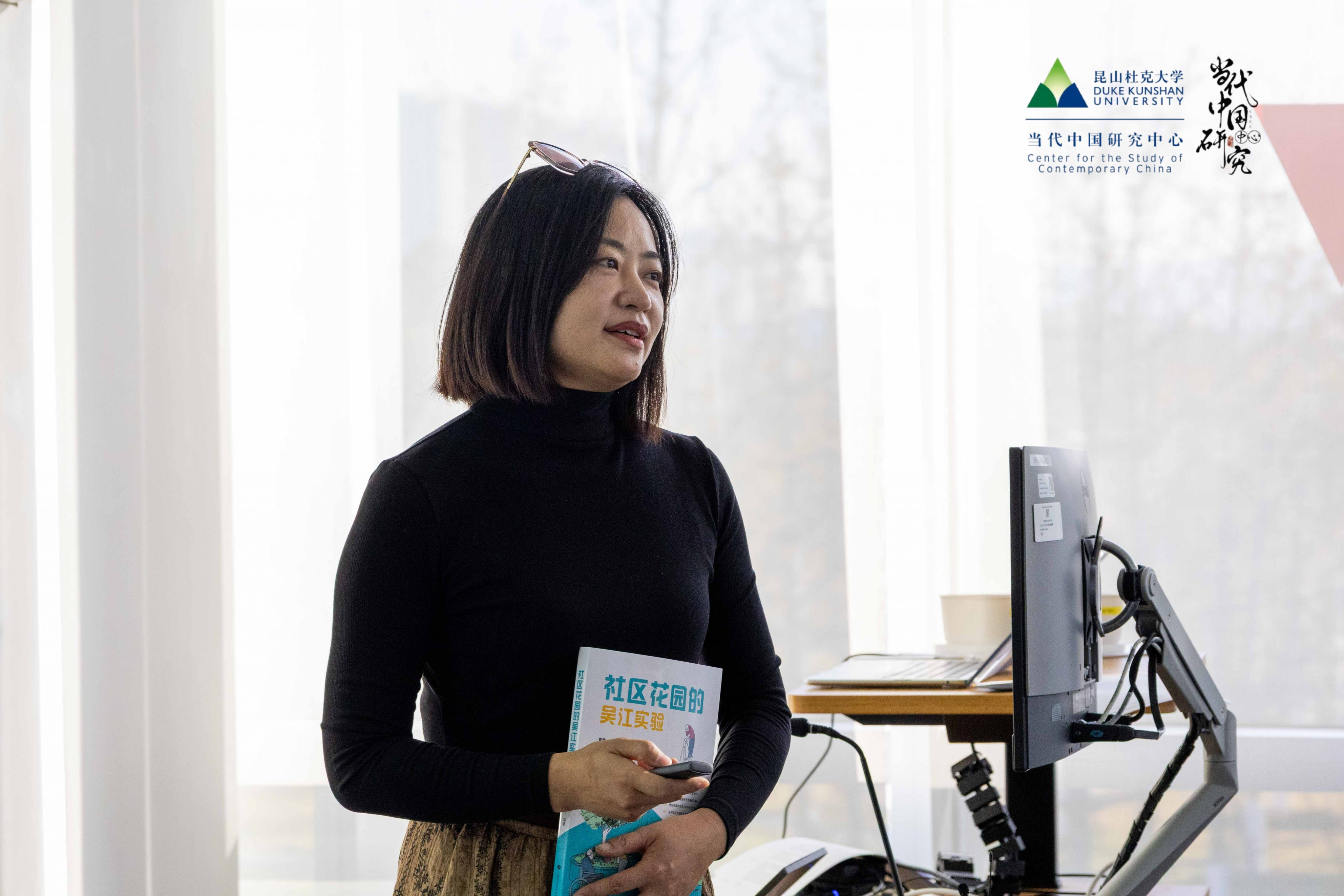 Professor Anna Greenspan introduced NYU Shanghai’s rooftop gardening initiative, describing how students participate through the university’s fellowship program. The initiative’s impact on sustaining student’s participation was highlighted in her talk.