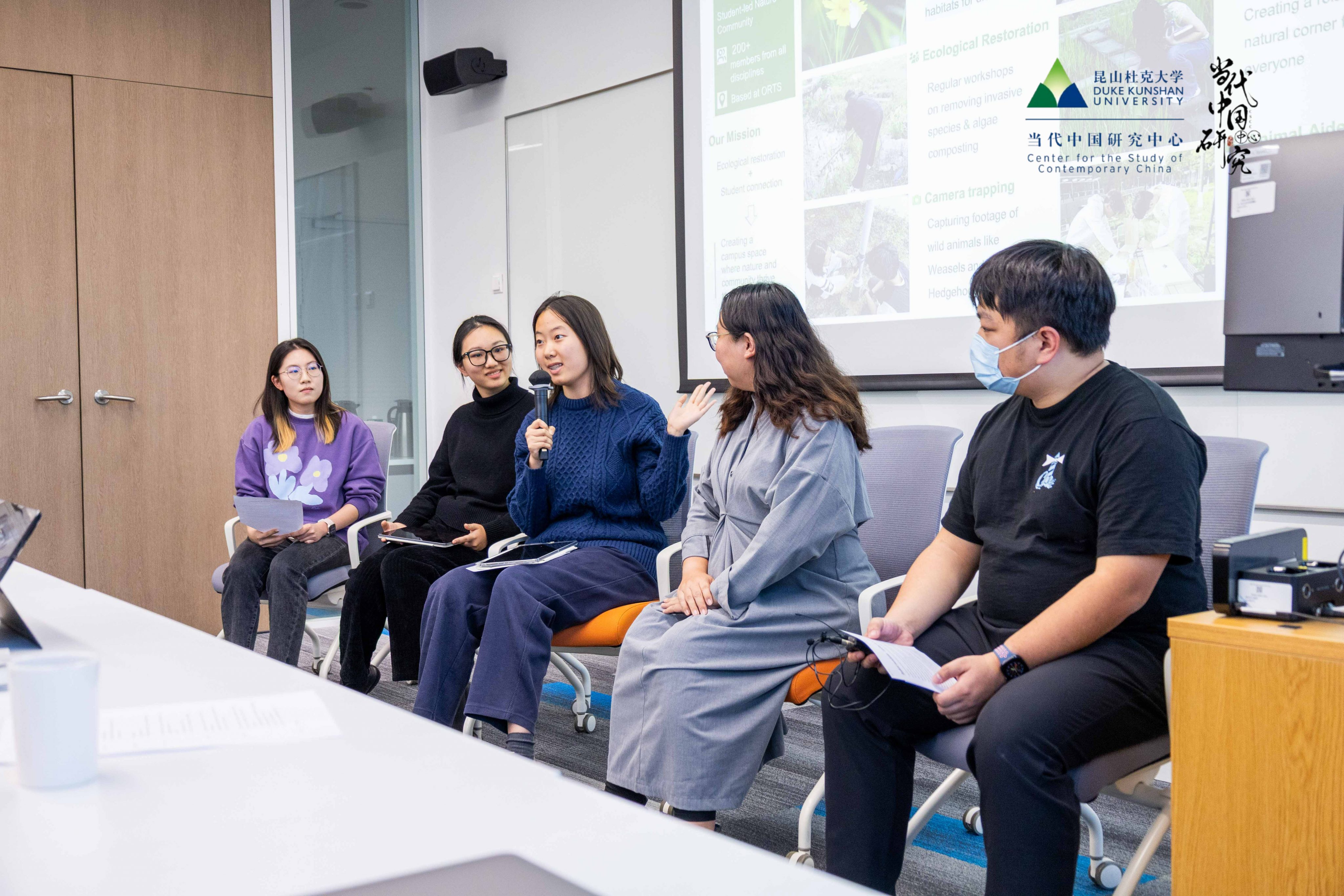 Following the presentations, students gardeners participated in a roundtable discussion on sustaining student engagement in campus gardening. Discussants included Jing Yuan (Peking University), Keyu Zhang (NYU Shanghai), Xiaoye Pan (XJTLU), and Xinxue Wang (DKU).