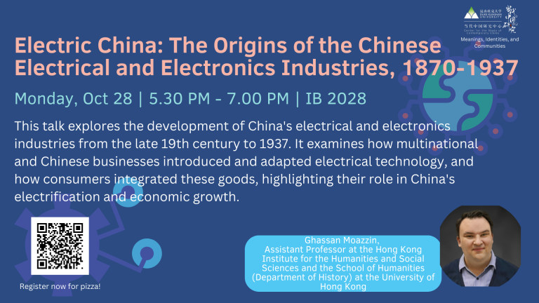 This research project aims to reconstruct the history of China’s electrical and electronics industries between the late 19th century and the outbreak of the Sino-Japanese War in 1937. Situated at the intersection of economic and business history, the history of technology and global history, this project traces the introduction and adaptation of electrical technology and electrical appliances — first by multinational and then by Chinese businesses — in modern China. In addition to its primary focus on the business history of the two industries, the study will also reconstruct Chinese consumers’ use and integration of electrical goods into their daily lives and how businesses interacted with those consumers in order to understand the development of China as a market for electrical goods. In sum, this study aims to explain the role that the electrical and electronics industries played in the electrification of modern China and how the two industries can be situated in the broader development of Chinese business and the Chinese economy during the 19th and 20th centuries.