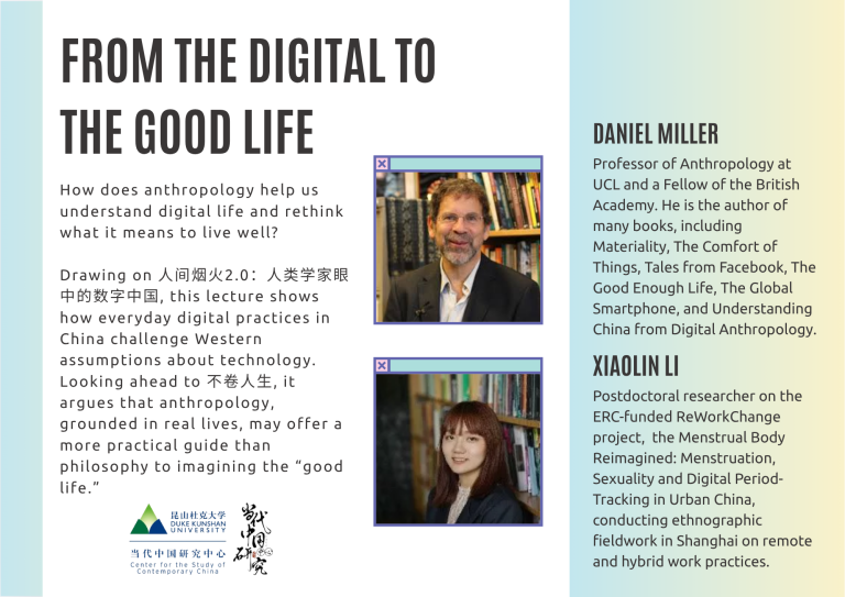 Daniel Miller is Professor of Anthropology at University College London and a Fellow of the British Academy. He is the co-convenor of the master’s programme in Digital Anthropology. Recent books include forthcoming不卷人生, The Good Enough Life. 2026 Ed. with Xinyuan Wang, 人间烟火2.0:人类学家眼中的数字中国, Understanding China through Digital Anthropology. 2025 Ed. with Pauline Garvey, The Age of Retirement: An Anthropological Perspective. 2025 Ed. with Charlotte Hawkins and Patrick Awondo, An Anthropological Approach to mHealth. 2021 (with ten others),The Global Smartphone: Beyond a youth technology. 2021 With Pauline Garvey, Ageing with Smartphones in Ireland.
