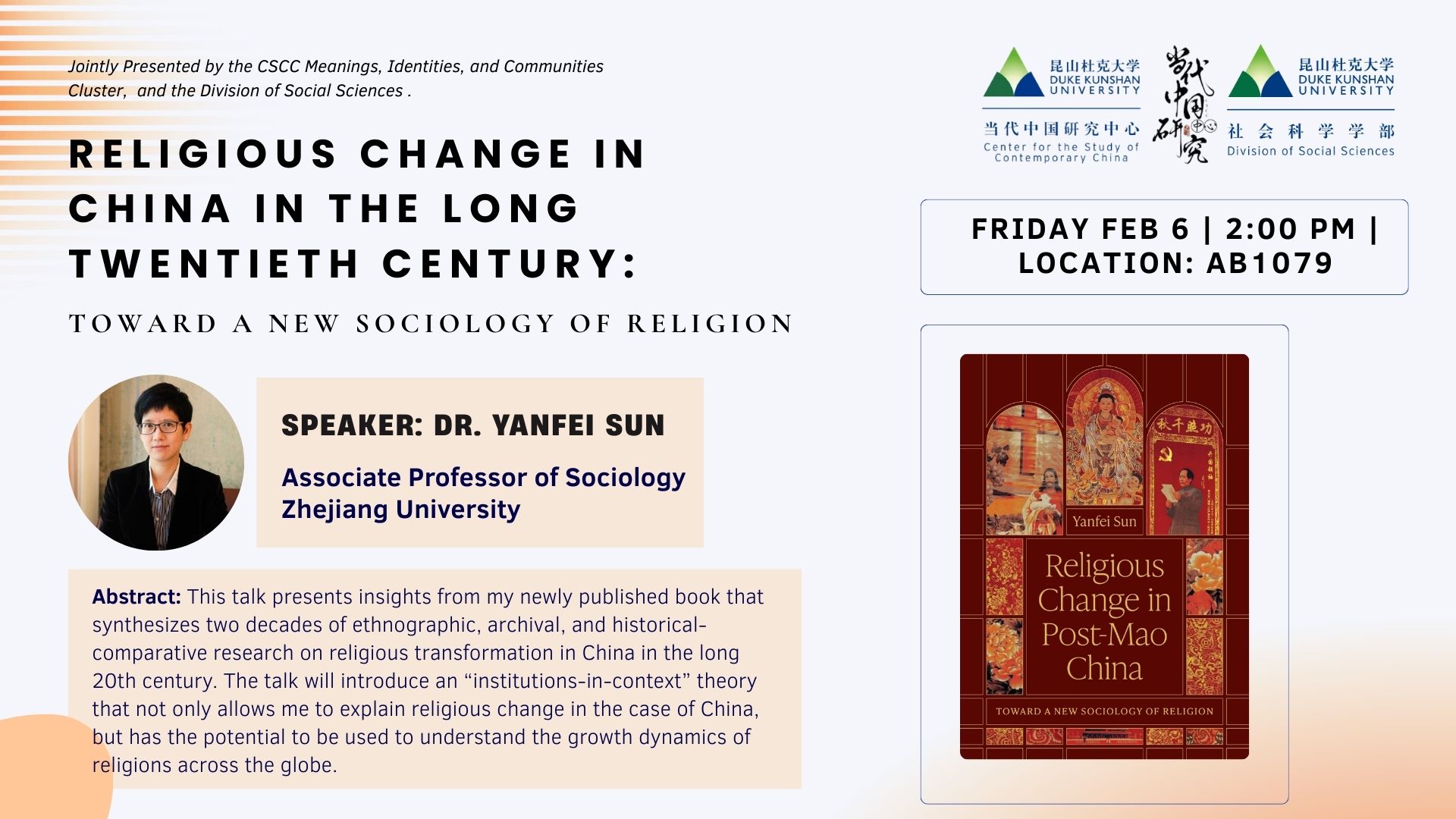Speaker: Dr. Yanfei Sun, Associate Professor of Sociology at Zhejiang University