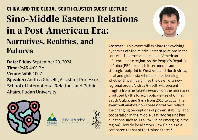 This event will explore the evolving dynamics of Sino-Middle Eastern relations in the context of a perceived decline of American influence in the region. As the People’s Republic of China (PRC) expands its economic and strategic footprint in West Asia and North Africa, local and global stakeholders are debating whether this shift signifies the dawn of a new regional order. Andrea Ghiselli will present insights from his latest research on the narratives produced by the foreign policy elites of China, Saudi Arabia, and Syria from 2010 to 2023. The event will analyze how these narratives reflect the changing perceptions of power, stability, and cooperation in the Middle East, addressing key questions such as: Is a Pax Sinica emerging in the region? How do local actors view China’s role compared to that of the United States?
