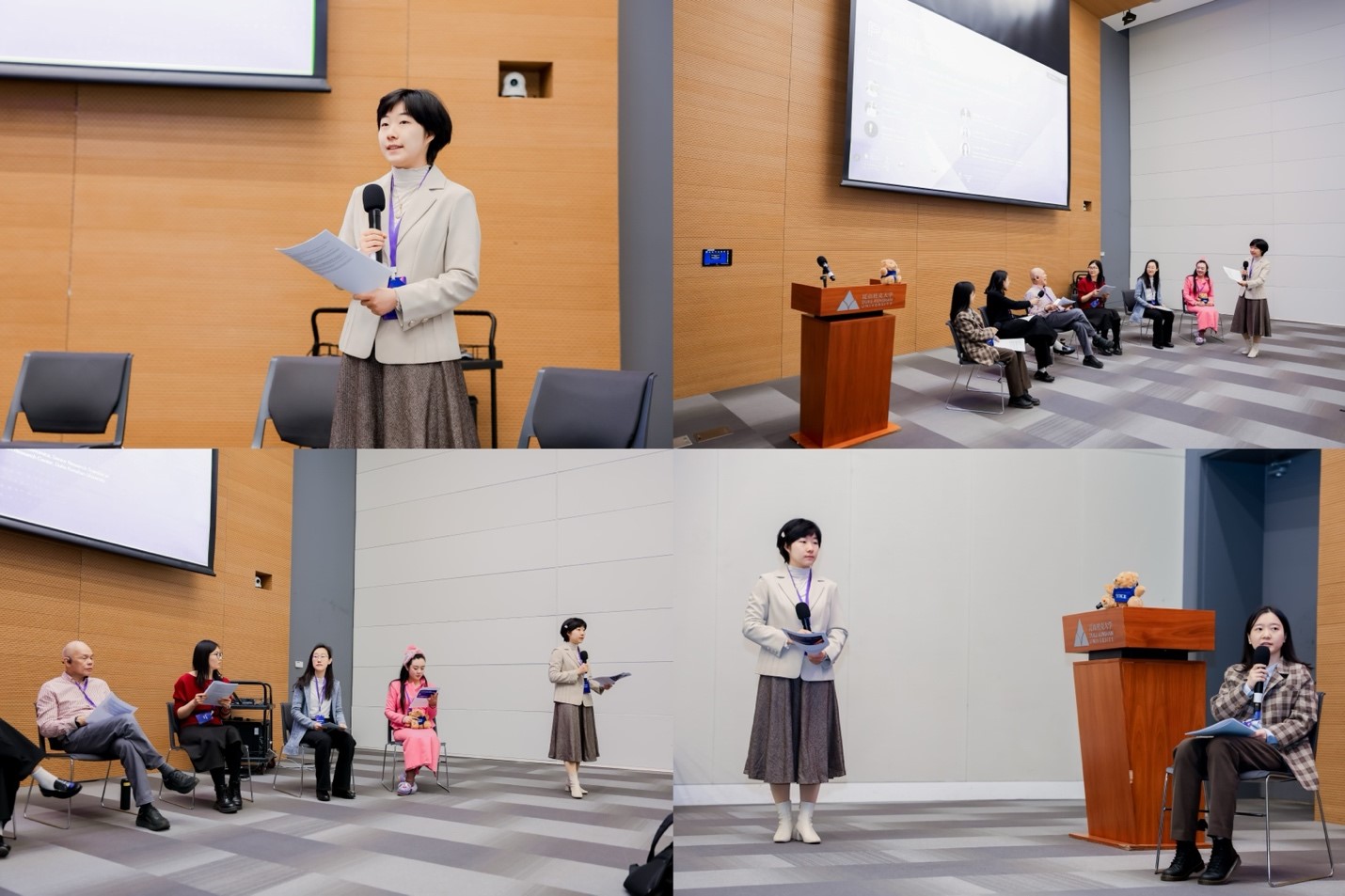 Chaired by Prof. Luyao Zhang, this panel brought together an interdisciplinary ensemble spanning computational media arts, social computing, affective engineering, and health technology, featuring Prof. Xin Tong (Assistant Professor, Computational Media and Arts Thrust, HKUST Guangzhou), Prof. Yuling Sun (Research Professor, Fudan University), Prof. Li Liu (Assistant Professor, HKUST Guangzhou), and Prof. Yuchen Jing (Assistant Professor of Computer Science, Duke Kunshan University). Rather than treating technology as an abstract system, the presenters demonstrated how computational science interfaces with embodied human experience: Prof. Tong traced behavioral dynamics in human-AI co-writing to illuminate collaborative cognition through multi-layered interaction analysis; Prof. Sun bridged health informatics and social science to critically examine data-driven eldercare within the situated complexities of aging and caregiving; Prof. Liu integrated affective computing with accessibility engineering, presenting emotion-intelligent audio-visual systems—including Chinese Cued Speech for hearing-impaired communities—that unite algorithmic design with embodied communication needs; and Prof. Jing anchored generative AI in reflective health practices, scaffolding physical well-being through adaptive immersive exercise systems. Collectively, the panel signaled a maturation of the field, moving beyond purely functionalist applications to foreground the affective, reflective, and accessibility-oriented dimensions of human-centered computation.