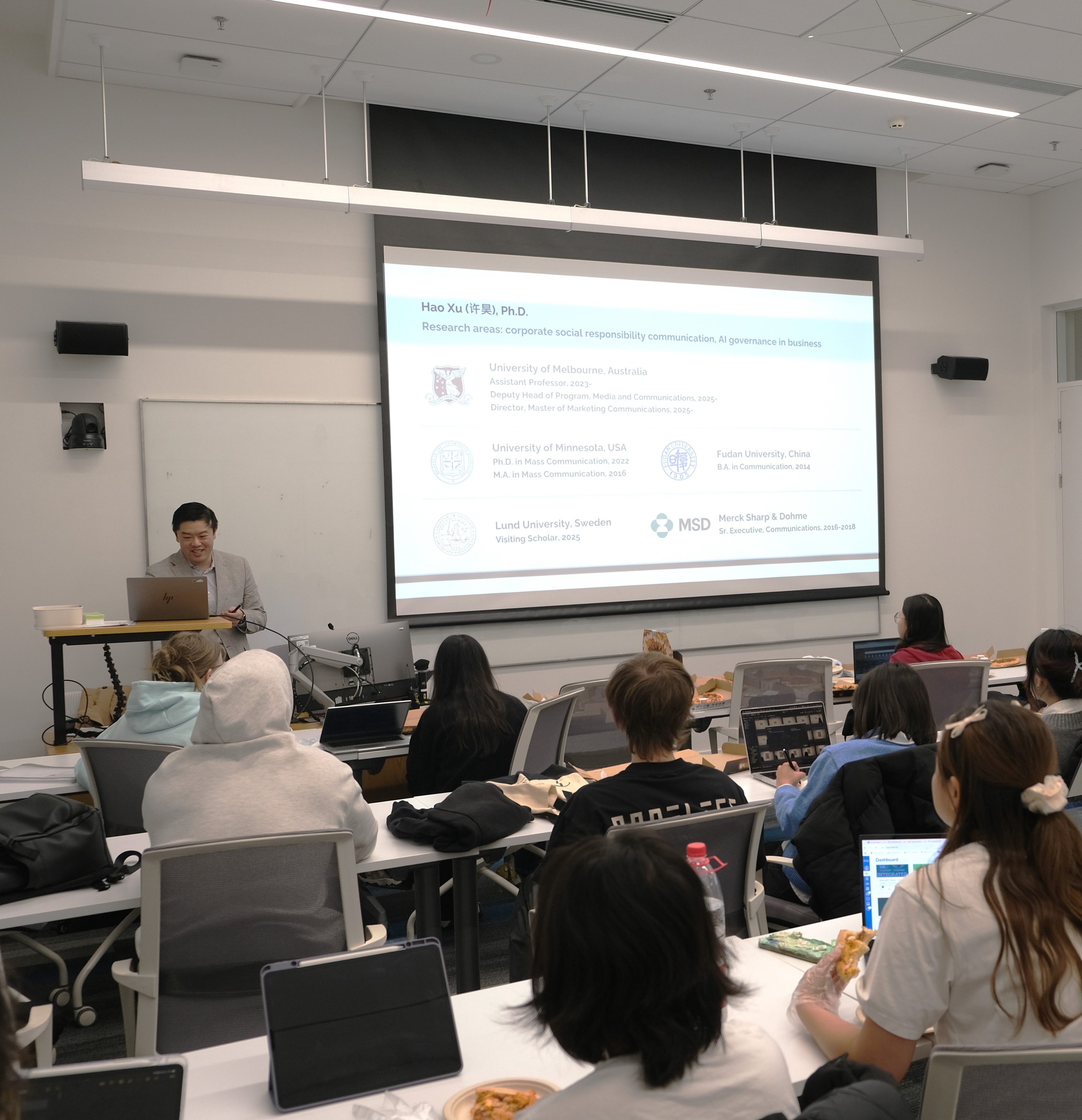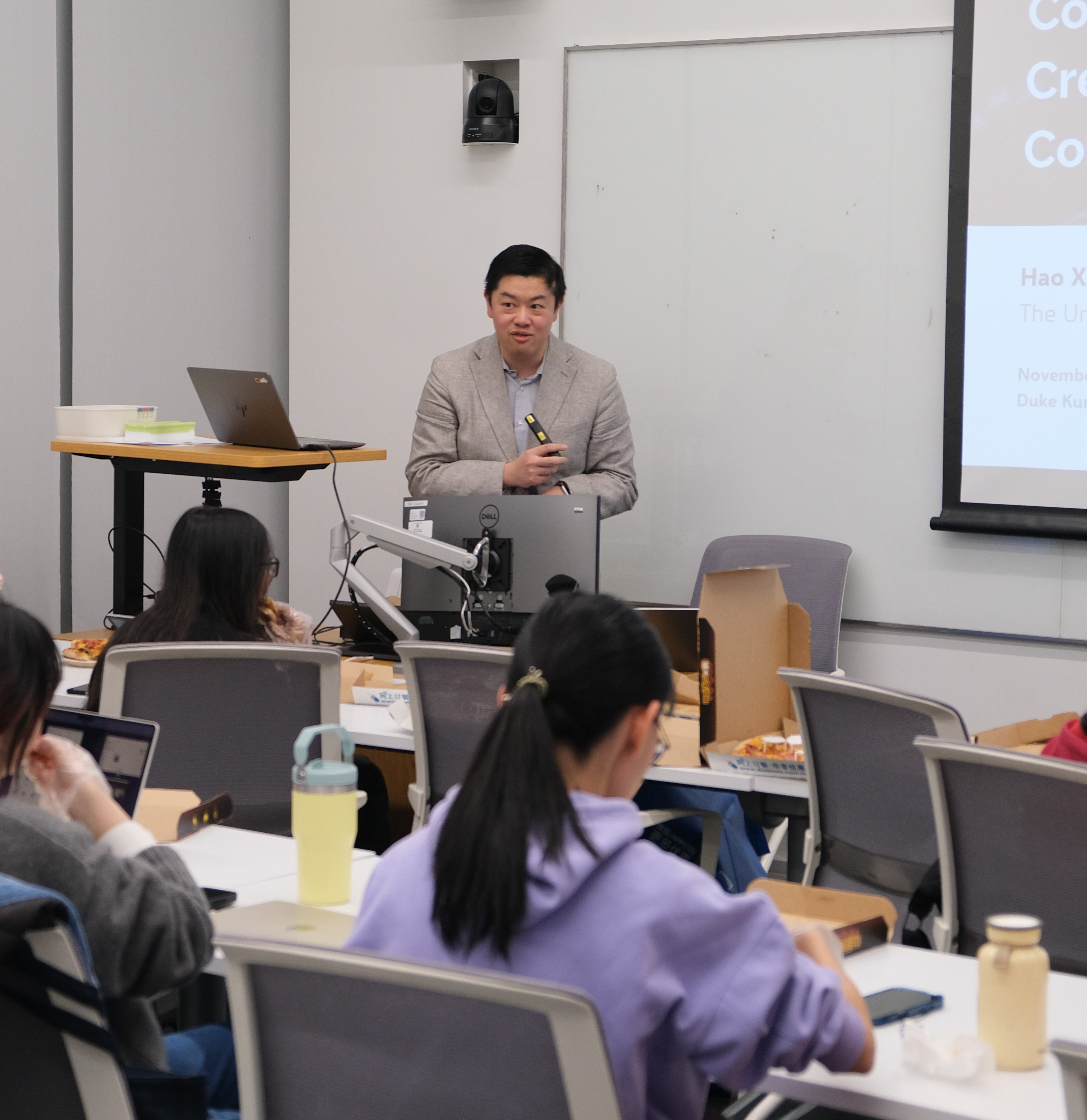 On November 25, 2025, the Center for the Study of Contemporary China (CSCC) and the Division of Social Sciences hosted Dr. Hao Xu, Assistant Professor in Media and Communications at the University of Melbourne, for an engaging research talk on corporate social advocacy (CSA). Drawing on empirical studies conducted across the United States, Australia, and the Asia-Pacific, Dr. Xu examined how corporations navigate contested social and political issues, and how publics evaluate such involvement. His talk highlighted the complex interplay between authenticity, value alignment, and stakeholder perception in shaping the outcomes of advocacy initiatives.